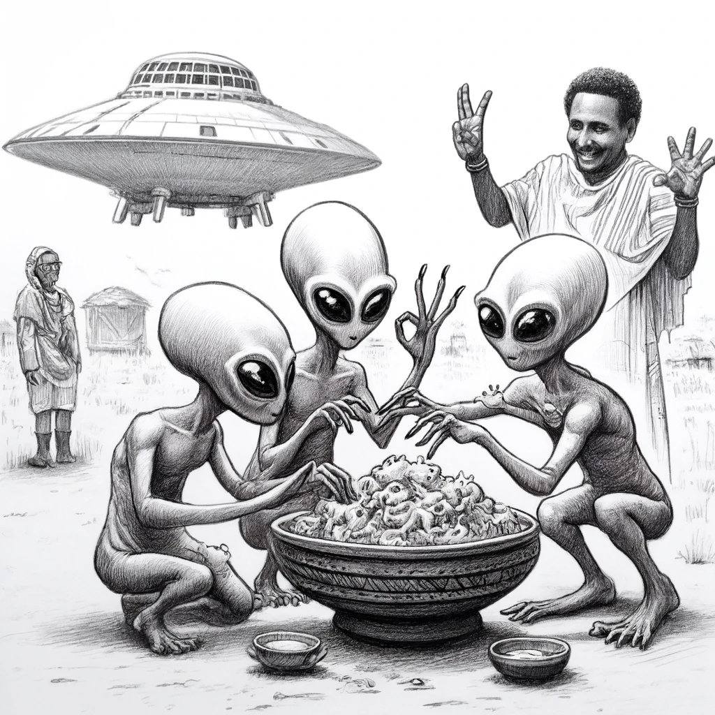 However, Ato Amanuel’s evidence extends beyond the kitchen. He recounts encounters with extraterrestrial visitors who share his passion for Ethiopian cuisine.